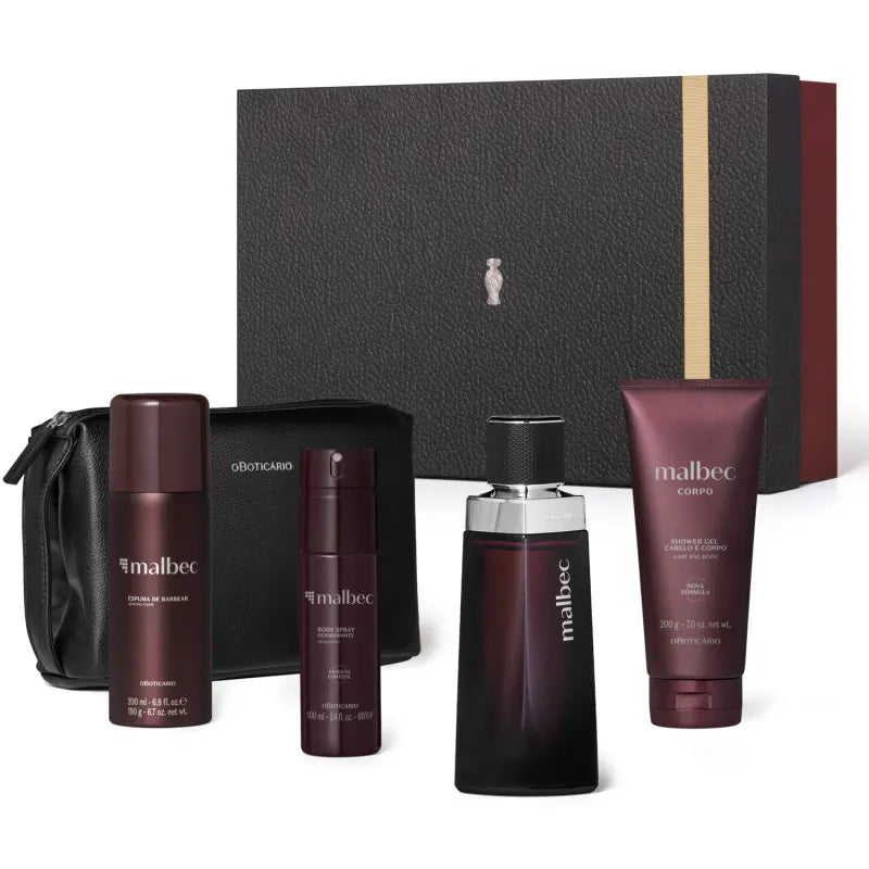 O Kit Premium Presente Malbec é um presente sofisticado, marcante e com muita personalidade, combina os melhores produtos da linha Malbec O Boticário e uma exclusiva nécessaire, mantendo a iconicidade inconfundível da marca.Para deixar tudo mais especial, este presente masculino vem embalado em uma sofisticada e exclusiva caixa de presente e pronto para presentear: